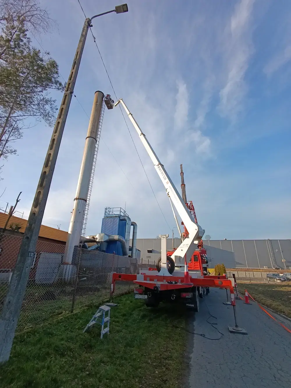 Wymiana opraw oświetleniowych, konserwacja latarni, lamp ulicznych i oświetlenia obiektów sportowych. Obsługujemy także wysokie słupy i trudno dostępne instalacje.