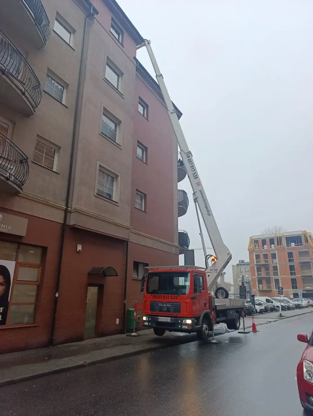 Operator bystry, ogarnięty sprzęt bardzo dobry płynnie działa bez szarpnięć w czasie pracy, usługa wykonana szybko i w terminie w dobrej cenie, światełka na choinkę około 10 metrów wysokości