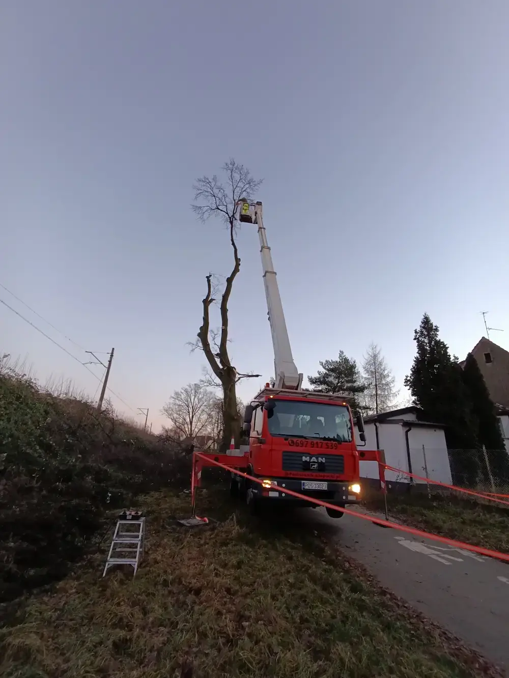 Bezpieczne przycinanie gałęzi oraz usuwanie drzew w miejscach trudno dostępnych, także w pobliżu zabudowań i infrastruktury.